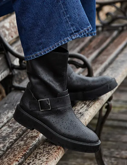 Triple Black Suede Lace-Up Zip Boots