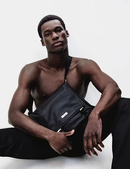 Black Matte Nylon Messenger Bag